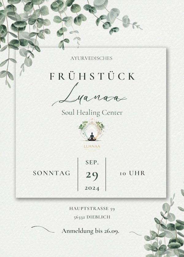 Wir laden dich herzlich zu unserem Luanaa Soul Healing Frühstück am 29. September um 10 Uhr in unserem Zentrum ein!